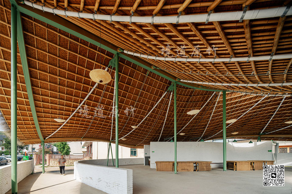 这句对话,折射出乡村建设中深层次的观念碰撞。在村民惯常认知中,政府公共建筑应当“气派”,而原竹这种在村里常被用来搭建临时棚架的材料,显然与这种期待相去甚远。而这正是久舍营造工作室想要打破的偏见——在地的材料结合适宜的技术,完全能够创造出具有当代品质的公共空间。