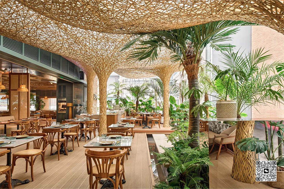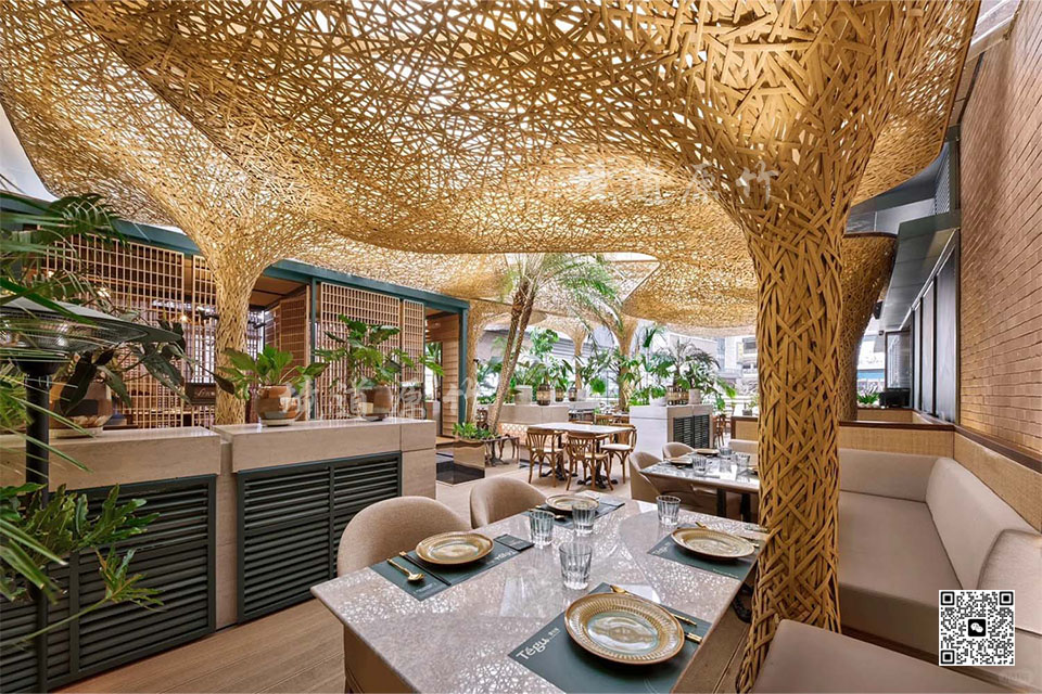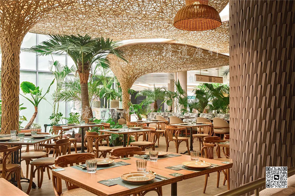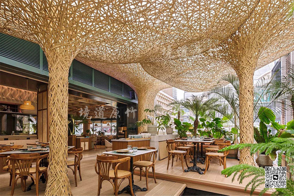此外,竹编装置也折射出可持续理念的实践。竹材生长迅速,固碳能力强,是环保优先的建筑材料;而传统竹艺的现代运用,既减少了资源消耗,也延续了手工艺的文化内涵。正如相关研究表明,现代竹结构正以“生态友好+文化表达”的双重优势,成为商业空间里受欢迎的“绿色美学方案”。
