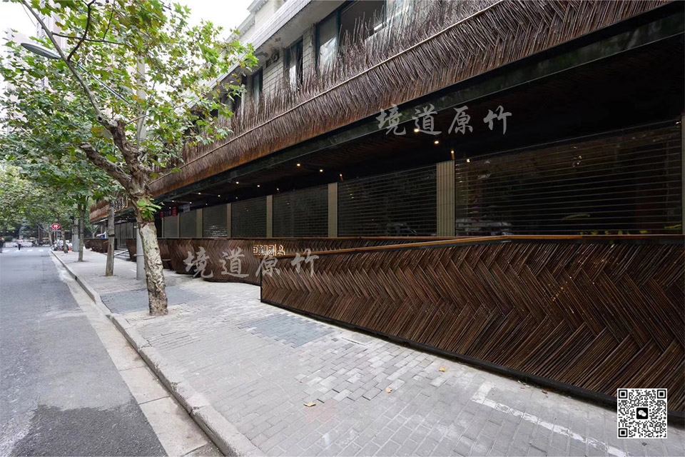 碳化竹竿以深邃色调与精致简约,成为境道原竹诠释空间质感的代表。通过高温碳化工艺,竹材表面呈现出由咖啡棕至乌木黑的渐变色泽,纹理在淬炼后愈发清晰而富有层次。无论是整根构筑隔断骨架,或切片拼合成墙面艺术,均经由境道原竹深化设计、材料处理与施工落地,实现低调而高级的氛围营造。在保留竹材坚韧本质的同时,融入岁月厚重感,尤为契合侘寂风、工业风等追求质朴与永恒之美的空间语境。